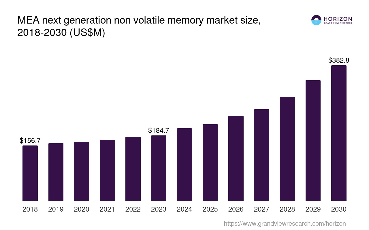 The databook is designed to serve as a comprehensive guide to navigating this sector. The databook focuses on market statistics denoted in the form of revenue and y-o-y growth and CAGR across the globe and regions. A detailed competitive and opportunity analyses related to next generation non volatile memory market will help companies and investors design strategic landscapes. High-bandwidth memory (hbm) was the largest segment with a revenue share of 100% in 2023. Horizon Databook has segmented the Middle East & Africa next generation non volatile memory market based on high-bandwidth memory (hbm) covering the revenue growth of each sub-segment from 2018 to 2030.