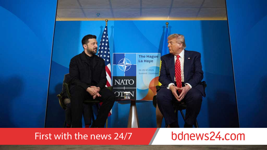 US President Donald Trump and Ukraine's President Volodymyr Zelenskiy attend a meeting on the sidelines of NATO summit in The Hague, Netherlands Jun 25, 2025. US President Donald Trump and Ukraine's President Volodymyr Zelenskiy attend a meeting on the sidelines of NATO summit in The Hague, Netherlands Jun 25, 2025. Ukrainian President Volodymyr Zelensky said he discussed air defences in a conversation with US President Donald Trump on Friday, and agreed to work on increasing Kyiv's capability to "defend the sky" as Russian attacks escalate. Ukraine has been asking Washington to sell it more Patriot missiles and systems that it sees as key to defending its cities from intensifying Russian air strikes. The conversation came a day after Trump said he had a disappointing call with Russian President Vladimir Putin.