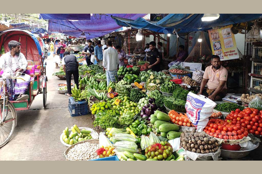 While white and red layer chicken prices remained steady, the price of country chicken dipped slightly. Farm-raised red eggs were selling for Tk 110 to Tk 115 per dozen, down from Tk 120 to Tk 125. Thick ginger was being sold at Tk 160 to Tk 170, and thin ginger at Tk 110 to Tk 120 per kg. Large garlic ranged from Tk 160 to Tk 180, and small garlic was priced at Tk 120 to Tk 130. Moringa was being sold at Tk 100 to Tk 120, while luffa gourd remained unchanged at Tk 60.