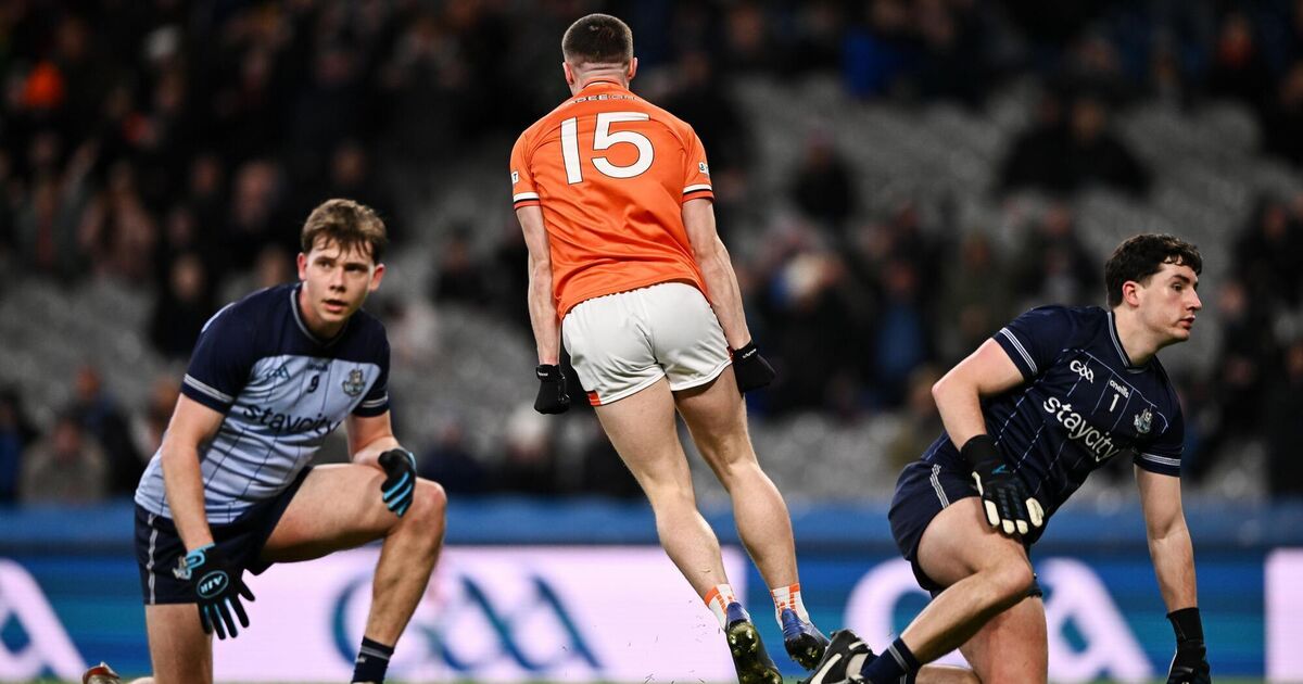 NFL Division 1: DUBLIN 1-25 (1-2-21) ARMAGH 2-24 (2-2-20)Armagh’s refusal to wilt ensures they live to fight another day. Killian McGinnis was finding his range but three Armagh points without reply sliced the gap to five. Scorers for Armagh: C. McConville (0-2 frees), O. Conaty (1-3 each); O. O’Neill (0-5, 1 tpf, 3 frees); T. McCormack, C. Turbitt (1 tp), R. McQuillan (0-3 each); J. Duffy (0-2); B. Crealey, C. O’Neill (free) (0-1 each). ARMAGH: B. Hughes; P. McGrane, G. Murphy, A. McKay; R. McQuillan, D. McMullan, J. Burns; C. O’Neill, B. Crealey; T. McCormack, G. McCabe, T. Kelly; C. McConville, J. Duffy, O. Conaty. Subs for Armagh: O. O’Neill for C. O’Neill (h-t); P. Burns for A. McKay (blood, 43-45); C. Turbitt for J. Duffy (52); P. Burns for A. McKay (61); A. Forker for D. McMullan (69).