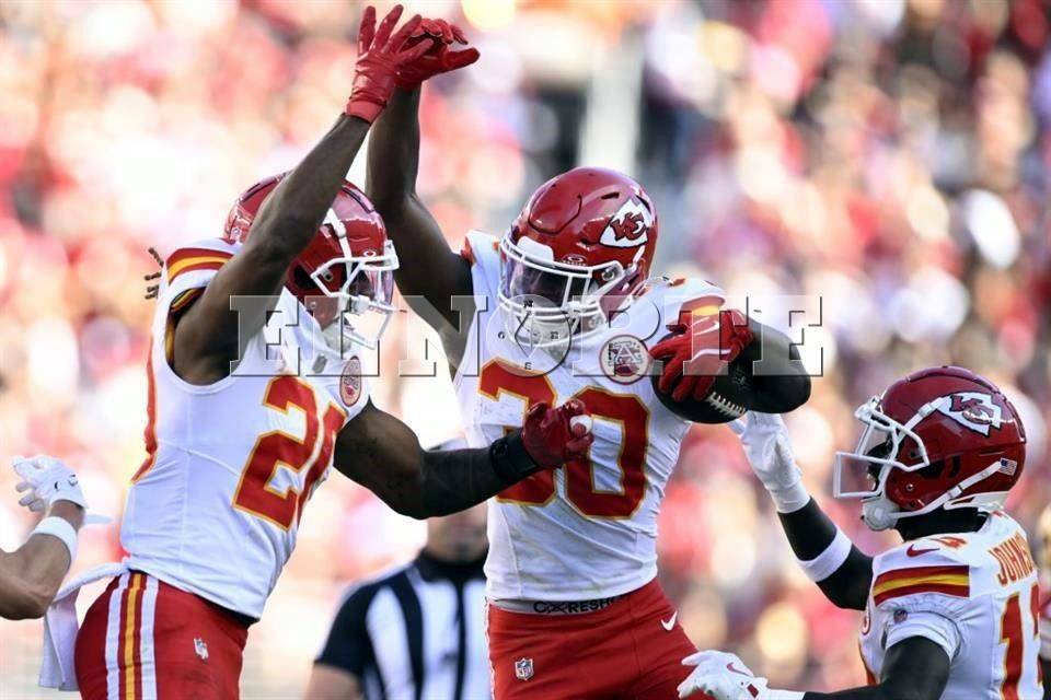 CANCHAKansas City, único invicto en la NFL, vence a San Francisco00 MIN 30 SEG CANCHA / Staff San Francisco, Estados Unidos (20 octubre 2024) .-17:59 hrsChristian Roland-Wallace (centro), de los Kansas City Chiefs, celebra después de interceptar un pase. Crédito: APKansas City Chiefs continúa con su paso perfecto en la NFL y su supremacía sobre los San Francisco 49ers, al imponerse 28-18, en uno de los duelos más atractivos de la Semana 7.