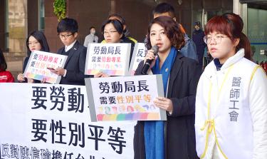 By Shen Pei-yao, Kuo An-chia and Jake Chung / Staff reporters, with staff writerUnions and gender equality groups yesterday rallied in front of Taipei City Hall to protest the appointment of Chen Hsin-yu (陳信瑜) as director of the Taipei Department of Labor, citing concern about Chen’s purported stance against homosexuality. Chen, a former Kaohsiung City councilor for the Democratic Progressive Party, is scheduled to take office today. Appointing this kind of person to a position related to gender equality affairs is troubling, Lu said. In 2014, Ko said that city residents should choose their department of labor director, and Lai Hsiang-ling (賴香伶) was appointed to the position after 19,956 residents voted. Chen’s anti-homosexual stance could affect the municipality’s ability to uphold the law, Fight for Gender Equality secretary-general Chou Yu-hsuan (周于萱) said.