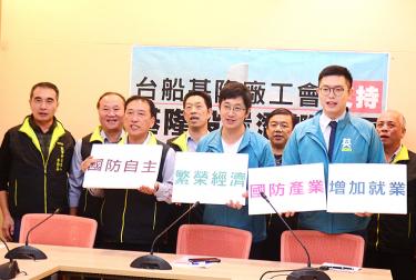 By Jason Pan / Staff reporterWorkers from shipbuilding yards in Keelung joined Democratic Progressive Party Legislator Tsai Shih-ying (蔡適應) yesterday in voicing their support for President Tsai Ing-wen’s (蔡英文) indigenous defense submarine program to create jobs and facilitate the development of the nation’s defense industry. It is appropriate that the new facility to construct our indigenous submarines be based here,” Tsai Shih-ying told a news conference yesterday. Our members working at the Keelung shipyard all want it to get started soon. It will boost the shipbuilding sector with its cluster effect, and give Keelung’s shipyard a vital role in developing our domestic defense industry,” Lan said. “The shipbuilding industry has been stagnant in the past few years.