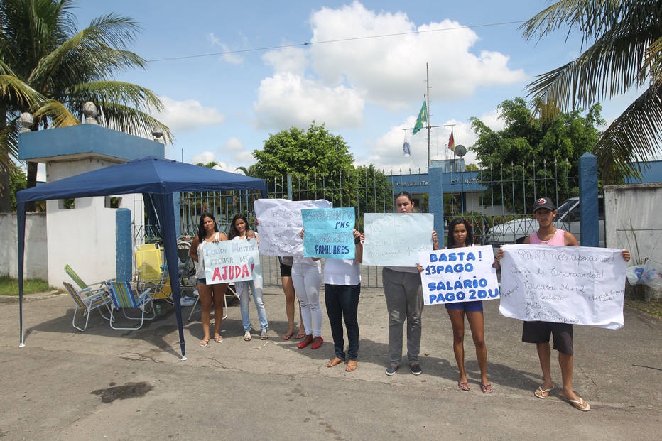 RIO - Como a entrada principal do 27º Batalhão da Polícia Militar, em Santa Cruz, na zona oeste do Rio de Janeiro, estava bloqueada por um grupo de familiares de policiais militares, agentes do batalhão derrubaram parte de um muro para sair com os veículos, na manhã desta sexta-feira, 10. A denúncia foi feita pelas mulheres, que contam ter flagrado a saída de quatro viaturas pelo espaço. "E teve policial que pulou o muro para sair para o trabalho." "Contávamos com o décimo terceiro e com as gratificações, que deveriam ter sido pagas no ano passado e até agora nada. Se o governo não tivesse roubado tanto, teria dinheiro para essas despesas", afirma a mulher de outro PM, que não quis se identificar.