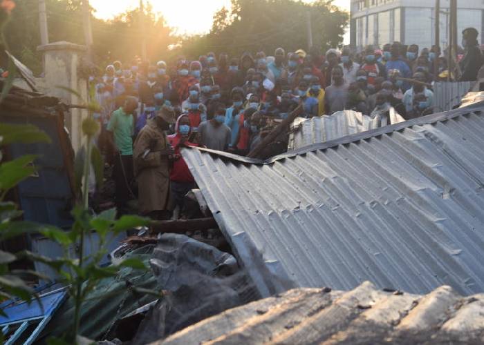 Residents and business owners along Kangundo Road on Saturday morning took to the streets to protest against demolition of their property. Several businesses and houses all the way to Manyanja Road were brought down during the operation conducted in the wee hours of Friday. "It is absurd that the President [Uhuru Kenyatta] can launch businesses and projects at night while ours are destroyed," one trader decried. The traders at the Kang'undo construction yard were alerted by security guards about the arrival of bulldozers at the site at 3am on Saturday. "We waited from 4am to rush to the site only to find most of the buildings already demolished," said a trader.