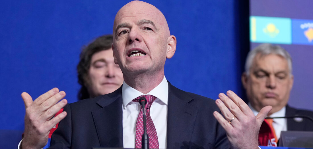 Mark Schiefelbein/AP/dpa FIFA-Präsident Gianni InfantinoZürich. Der Fußball-Weltverband hat anlässlich des 100-Tage-Countdowns bis zur WM in den USA, Mexiko und Kanada das offizielle Turnierposter vorgestellt. Es zelebriere »den wahren Geist, die Begeisterung und den Zusammenhalt dieses Weltereignisses«, befand die FIFA. Es illustriere »die einzigartige Fähigkeit des Fußballs, die Welt zu vereinen«, schrieb die FIFA. Das Plakat wurde erstmals in der WM-Geschichte von drei Künstlern gemeinsam gestaltet: Hank Willis Thomas (USA), Minerva GM (Mexiko) und Carson Ting (Kanada).