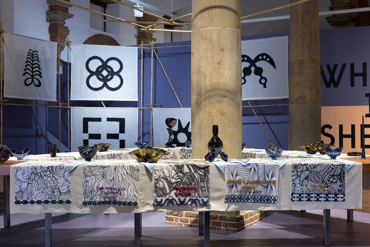 Beeld Charlott MarkusDe andere drie delen van het werk worden tentoongesteld in het Centraal Museum Utrecht, het Frans Hals Museum in Haarlem en het Van Abbemuseum in Eindhoven. Het werk bestaat in totaal uit vier grote tafels, waar symbolisch ‘plaats’ is voor zestig vrouwen. De vrouwen worden aan de tafels gesymboliseerd door glaswerk en geborduurd tafellinnen. voegt Kaersenhout een nieuw perspectief toe aan het iconische werk The Dinner Party (1974-1979) van Judy Chicago. Volgens Rein Wolfs, directeur van het Stedelijk Museum Amsterdam, zet het museum al een aantal jaar in op het presenteren en verzamelen van meer vrouwelijke kunstenaars.