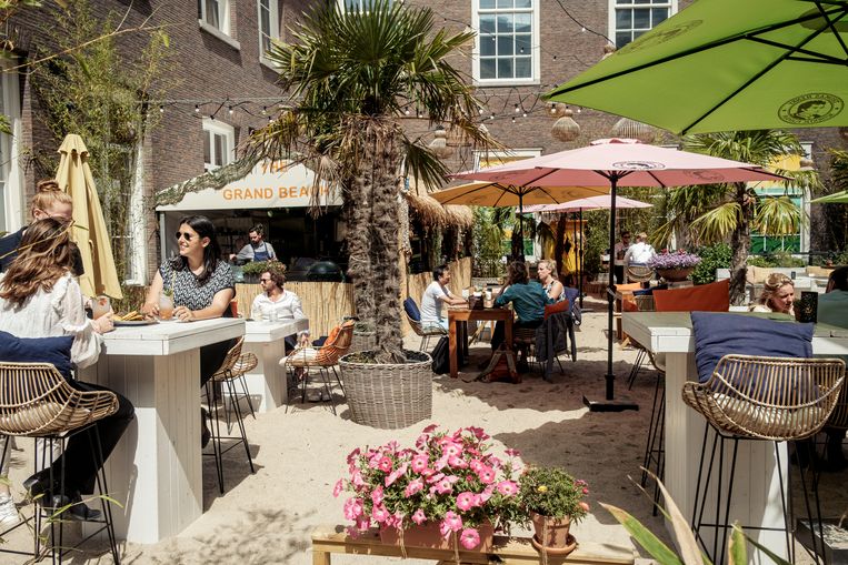 Beeld Jakob van VlietTussen de statige panden van de Oudezijds Achterburgwal, achter de grote poort van het chique hotel The Grand, ligt sinds een paar maanden een vissersboot op het droge. Eind mei heropende hier stadsstrand The Grand Beach, geheel in Caribisch thema. “Vorig jaar dachten we: als we niet naar Saint-Tropez kunnen, dan komt Saint-Tropez maar naar ons toe. Ook is er een cocktailkaart, met bijvoorbeeld piña colada’s (vanaf €12), een drankkaart met onder meer sangria (60 euro per pitcher), en een diner- en lunchkaart waar veel vis en chutneycombinaties op staan. Jansen: “Voor de gelegenheid heeft onze rum­leverancier Brugal speciaal een Caribische vissersboot laten maken.”