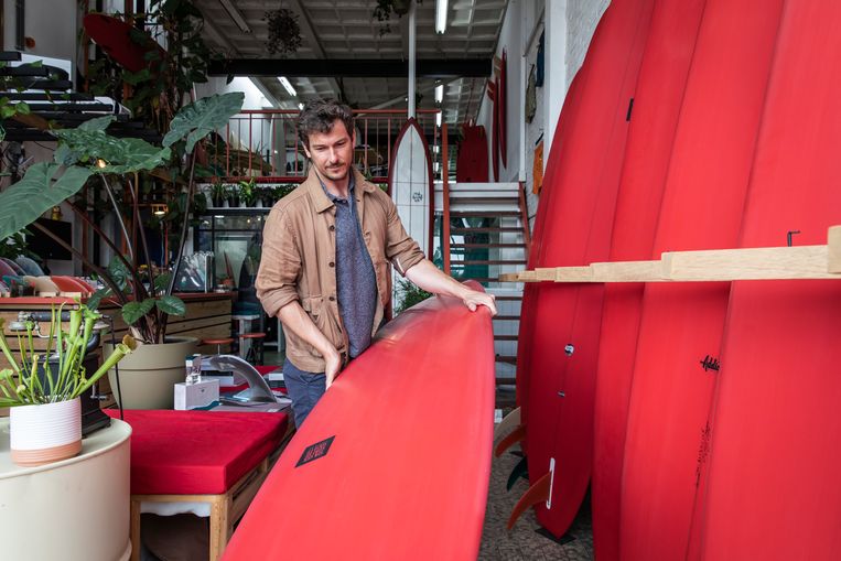 Eigenaar Simon James in zijn nieuwe surfclub: ‘Een bibliotheek aan boarddesign.’ Beeld Dingena MolHet is een behoorlijke uitdaging om je níet relaxed te voelen in surfclub Sea Sick Surf Society. “Een bibliotheek aan boarddesign,” zegt Simon James (37), eigenaar van de Sea Sick Surf Society. Van gigantische longboards tot de allerkleinste shortboards, alle typen surfplanken die je maar kunt bedenken staan ertussen. Daar kun je in Europa amper aan komen.”En die handgemaakte surfplanken staan er niet voor de show: je kunt bij de Sea Sick Surf Society een maandelijks opzegbaar lidmaatschap nemen voor 33 euro per maand. James: “Dat is een knipoog naar de Mokumkruisen.”Sea Sick Surf Society Chrysantenstraat 20ATips?