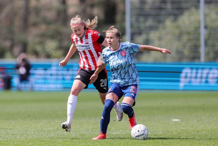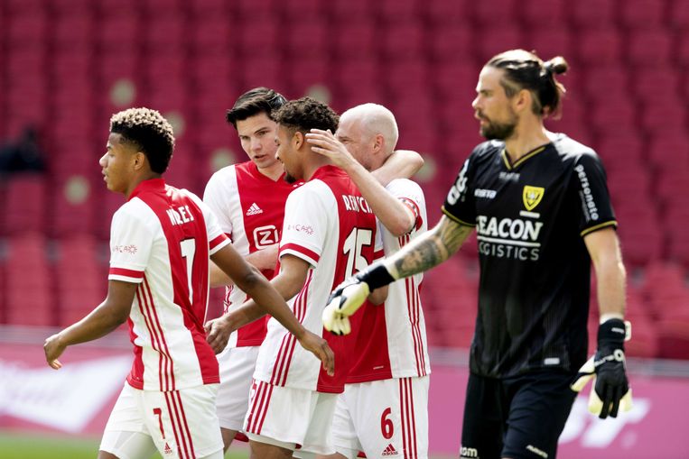 2021-05-13 14:39:06 AMSTERDAM - Devyne Rensch of Ajax scoort 1-0 tijdens de Nederlandse Eredivisie wedstrijd tussen Ajax en VVV-Venlo in de Johan Cruijff Arena op 13 mei 2021 in Amsterdam, Nederland. ANP OLAF KRAAK Beeld ANPVVV speelde sinds 2017 op het hoogste niveau. De club begon nog wel aardig aan het seizoen, maar haalde slechts 1 punt uit de laatste veertien competitiewedstrijden. De spelers van VVV vormden vlak voor het duel een erehaag voor de kampioen uit Amsterdam en de directie van de bezoekers trakteerde op Limburgse vlaai. Maar de thuisploeg besloot toch gewoon zijn plicht te doen.