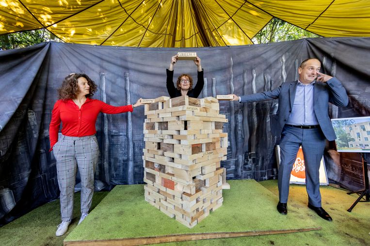 Beeld Jean-Pierre JansWoensdag is de eerste symbolische baksteen gelegd voor Bajesdorp, de nieuwe broedplaats op het terrein van de voormalige Bijlmerbajes. Die zorgt voor levendigheid en creativiteit, de buzz die zo’n wijk nodig heeft.”ExperimentDe ongebruikelijke combinatie van ex-krakers en vastgoedontwikkelaars was niet mogelijk geweest zonder de gemeente. De eerste baksteen die vandaag gelegd is, is niet van steen maar gemaakt uit de balken van de cipierswoningen.”Vrijkoop“Een nieuwe wijk heeft prikkels nodig en die geven wij. Den Oudendammer: “De combinatie wooncoöperatie en broedplaats is uniek voor Bajesdorp. Wie hier komt te wonen en werken heeft de verantwoordelijkheid om af en toe een rondleiding te geven of toelichting te geven.”“Een broedplaats in een nieuwe wijk zorgt voor sociaal-maatschappelijke versterking,” vinden ook Kloeze en Vink.