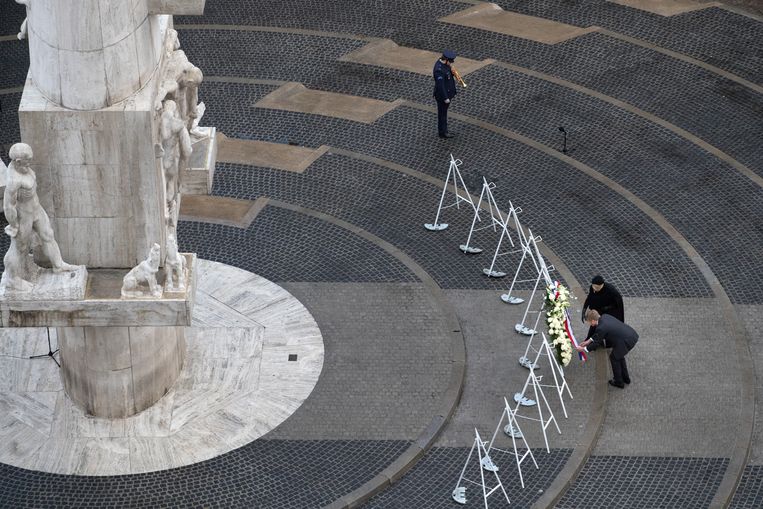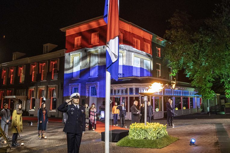Koning Willem-Alexander en koningin Máxima leggen een krans bij het Monument op de Dam. Nederland heeft te snel de dimlichten op haar verleden gericht, stelde ze, nog voordat de feiten in kaart zijn gebracht. Van Iperen verwijst naar het onderzoek dat ze verrichtte voor haar boek ’t Hooge Nest, dat gaat over twee Joodse verzetszussen die woonden in haar huis in Het Gooi. “Morgen vieren we de vrijheid, vandaag mag het gisten tot het pijn doet.”Spoken-wordvoordrachtKoning Willem-Alexander en koningin Máxima legden aan het begin van de herdenkingsplechtigheid bij het Nationaal Monument op de Dam een krans. “Het feit dat wij in Nederland sinds 1987, als eersten in de wereld, een monument zoals het Homomonument hebben, tekent onze vrijheid.