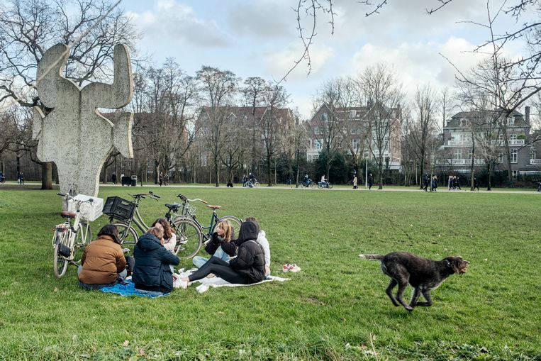 In het Westerpark trotseerden zondagmiddag 350 mensen de kou om te protesteren tegen opkomend fascisme. ‘Ik wil jullie er graag even op wijzen hoe je fascisme spelt.’“Wie niet springt, die is een fascist,” schalt het streng vanaf het podium op de zonneweide in het Westerpark. Niettemin: een opvallend geluid op een demonstratie waarvan de deelnemers zich zo ferm verzetten tegen autoritair leiderschap. In het park verzamelen zich om drie uur in de middag ruim driehonderd mensen om zich uit te spreken tegen fascisme na de bestorming vorige week van het Capitool in Washington. Vijfhonderd stippen zijn er deze keer op het veld aangebracht, het maximaal toe te laten aantal mensen.