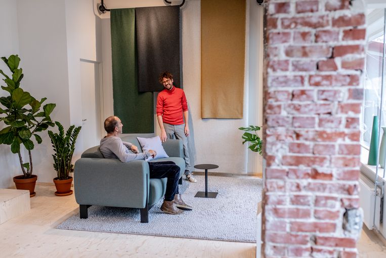 De showroom van bankenmerk Nel in Noord. Beeld Nosh Neneh“Ik had het gevoel dat ik de menselijkheid miste in de designwereld; alles draaide om de verkoop,” zegt Jorrit Tol (39). Tol kiest niet voor de goedkope optie qua onderdelen, waardoor de banken volgens hem zo dertig jaar meegaan. De twee banken die voor in de showroom staan vormen de basis van elke bank. Wanneer Tol de nieuwe bank komt bezorgen, neemt hij de oude graag mee om die te doneren aan mensen die hem hard nodig hebben.