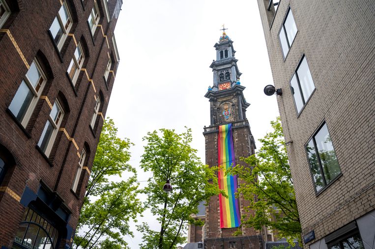 Een regenboogvlag op de Westerkerk. Beeld ANPHet ministerie van Volksgezondheid richt dit jaar speciaal de aandacht op ouders van tieners. Zo is de helft van de ondervraagde ouders niet op de hoogte van allerlei benamingen die in de homo- en transgenderwereld gebruikelijk zijn. Zo is een balkon waarvandaan de regenboogvlag werd gehesen in september bekogeld met eieren en een vuurwerkbom. Ook buurtbewoners hingen uit solidariteit de regenboogvlag uit.