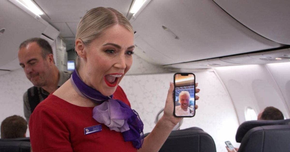 More than 150 passengers on a Virgin Australia flight from Melbourne to Hobart were treated to the surprise of a lifetime on Thursday morning, after everyone onboard received a free cruise thanks to CEO Sir Richard Branson. Cabin crew, ground crew, baggage handlers and pilots were also treated to the free cruise. "We're counting down to Virgin Voyages' arrival Down Under – setting sail the Virgin way with adults-only itineraries across Australia and New Zealand. READ MORE: Etiquette expert weighs in on reclining plane seat debateSir Richard Branson appeared on FaceTime to deliver the news. To celebrate this milestone, I'm pleased to gift each adult onboard a free Virgin Voyages cruise," he said to the passengers.
