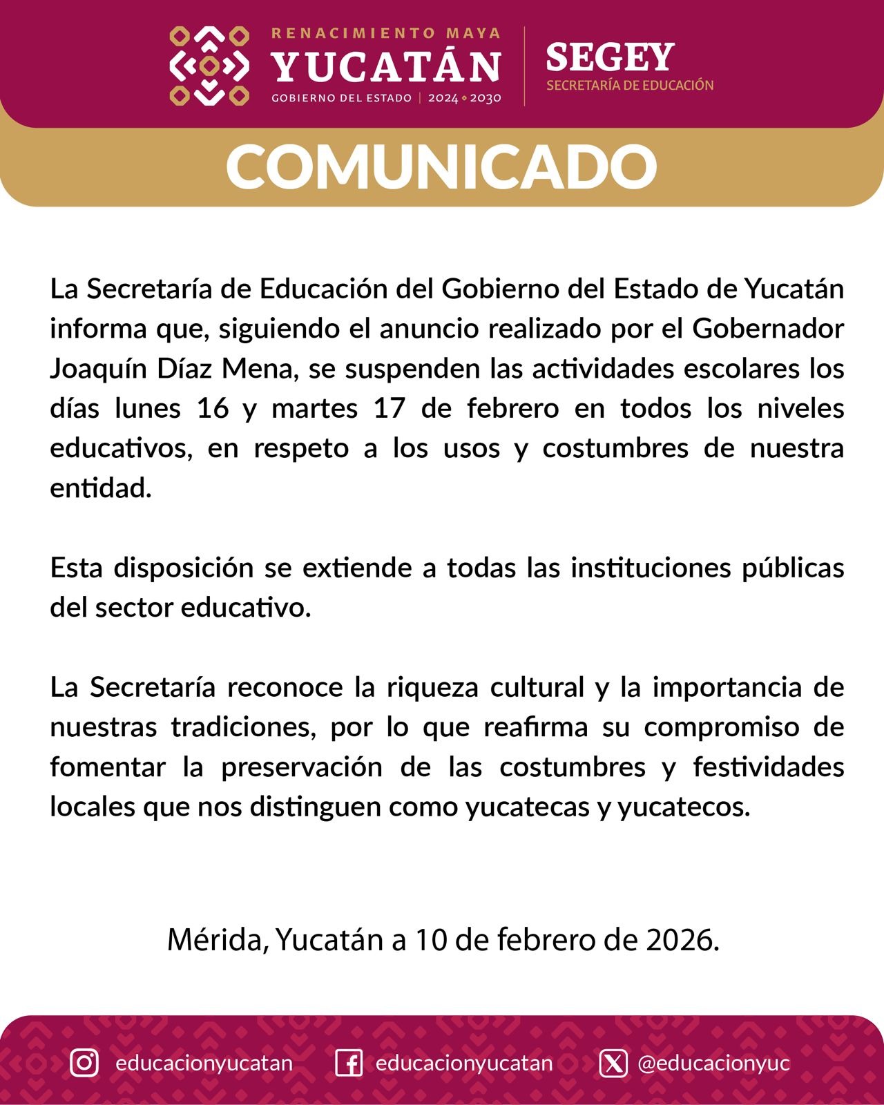Source: Diario de Yucatán February 10, 2026 18:30 UTC